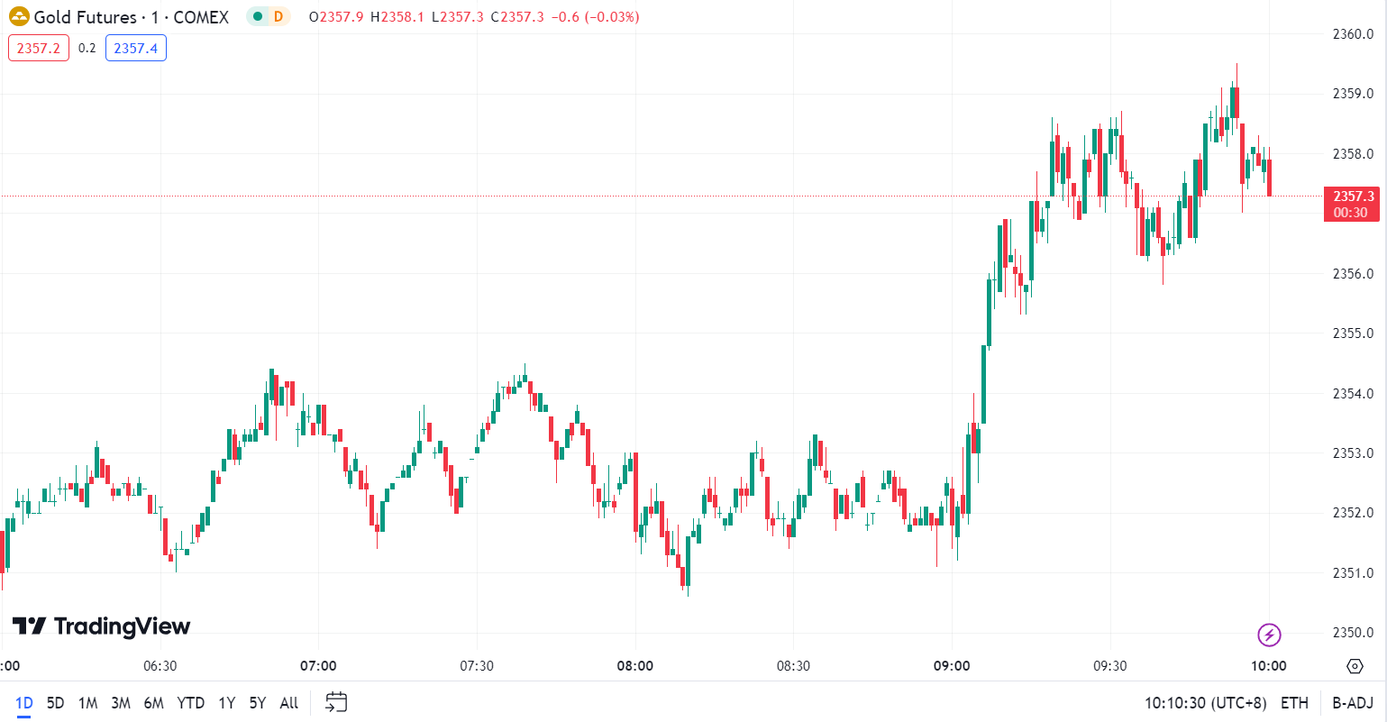 现货黄金窄幅震荡,目前交投于 2336.45 美元/盎司。周三金价从纪录高位下滑,盘中一度失守 2320 关口至 2319.30 美元/盎司,收报 2333.39 美元/盎司,美联储会议纪要显示,或需更长时间维持高利率,也令金价承压,不过中东地缘局势担忧仍给金价提供一些支撑。