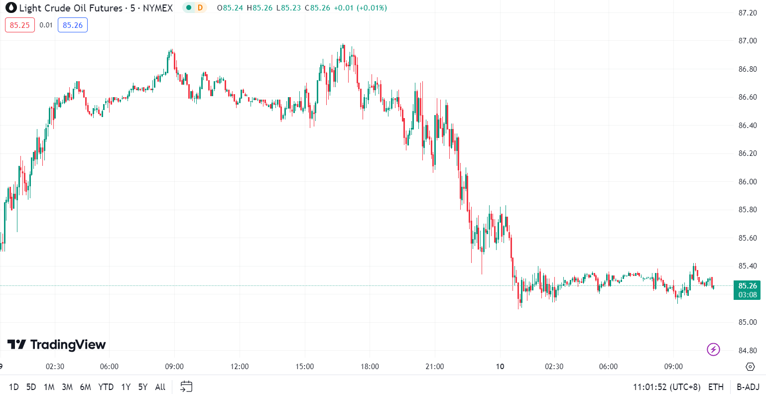 美原油在近一周低位附近徘徊,目前交投于 85.31 美元/桶。随着加沙停火谈判的继续,油价周二连续第二天走低,但跌幅限制在每桶不到一美元,因为埃及和卡塔尔调解员在寻求停火的过程中遇到了阻力。