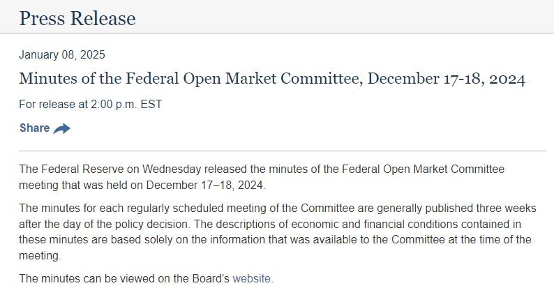 2025-01-09 | 会议纪要 , 美联储 , 降息