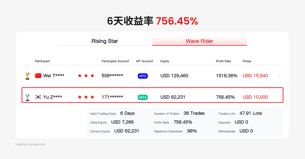 6 天 756.45% 的收益率,Yu Zaishek 向世人展示了什么是“韩国速度”,他的实力绝不亚于第一名 Wei Tengfei。