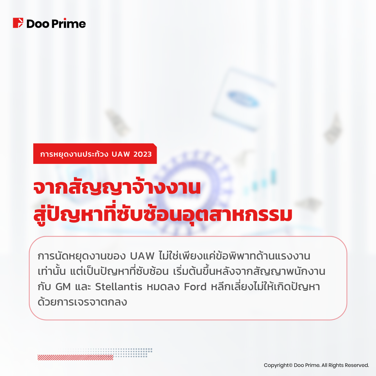 การนัดหยุดงานของ UAW ไม่ได้เป็นแค่เพียงข้อพิพาทด้านแรงงาน แต่เป็นความท้าทายที่ใหญ่หลวงต่อผู้เล่นหลักในอุตสาหกรรมยานยนต์ การนัดหยุดงานครั้งนี้มีลักษณะเป็นการหยุดงานแบบ “จำกัดและตรงเป้าหมาย” โดยเริ่มต้นหลังจากการสิ้นสุดสัญญาจ้างงาน 4 ปีของพนักงาน ซึ่งมีบริษัท General Motors และ Stellantis Ford พยายามหลีกเลี่ยงการหยุดชะงักในทันทีด้วยการเจรจา