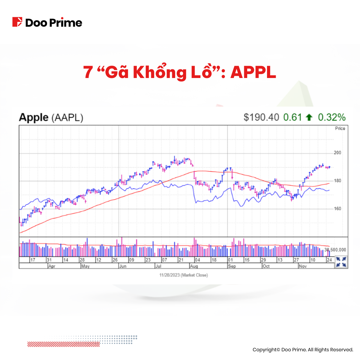7 cổ phiếu lớn nhất sàn chứng khoán Mỹ đang tăng cao. Cũng chính nhờ “Magnificent 7”, cụ thể bao gồm Apple (AAPL), Alphabet (GOOGL, GOOG), Microsoft (MSFT), Amazon (AMZN), Meta (META), Nvidia (NVDA) và Tesla (TSLA), làm động lực chính thúc đẩy thị trường chứng khoán Mỹ đạt đến đỉnh mới.